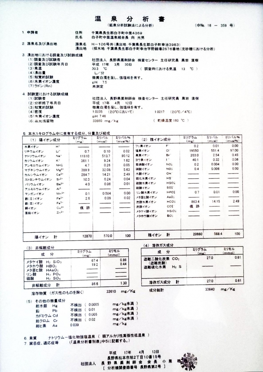 湯の第一印象はほのかな特異な香りでしょうか、成分見て納得。