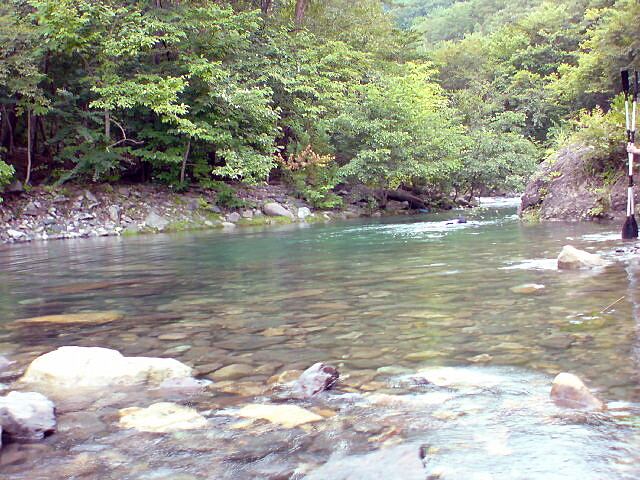 傍に庚申川が流れ、沢に降りれば泳げますが、真夏でも冷たいです。