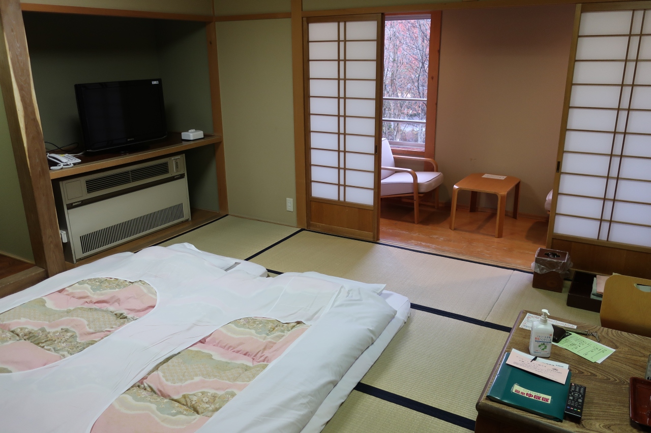 隣が日帰り温泉施設「よりみち温泉」で、温泉入り放題プランでの宿泊です。建物は繋がっていないので、いったん外に出なければならないのは手間ですが、チェックアウト後も温泉に入ることができたのは良い点です。夕食付きのプランはありませんが、温泉施設で夕食が食べられます。また敷地内にはスーパーマーケットがあるので、そちらでお総菜を買うこともできます。