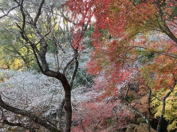 見事な赤紅葉が美しく、香積寺からつり橋へと行くと、少し人が少なくなりました。