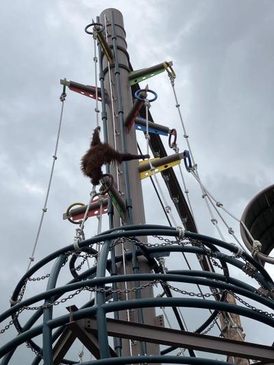 オランウータンも、空高くの移動遊具でしっかり移動してくれ。
