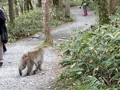 サル君を追い抜いても、人間は見るだけで何もしないと知っているので余裕の姿でした。