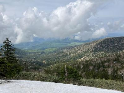 まだ雪が多く、踏み抜きなどもありましたが、何とか帰りのバスの時刻までに、山頂レストハウスに着けました。