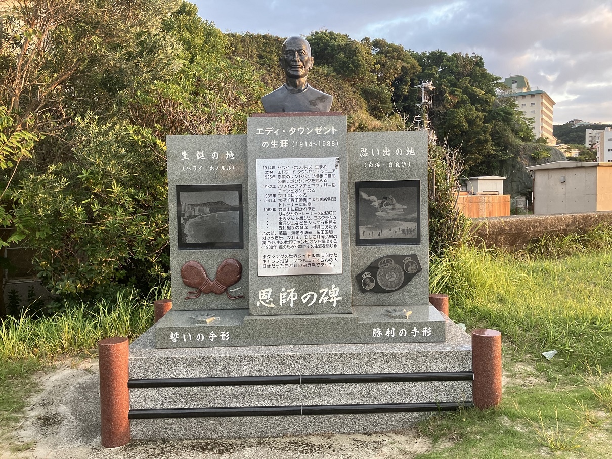 白浜が大好きだったというボクシングの名コーチ、エディ・クラウゼントさんの碑もあります。- 旅行時期
