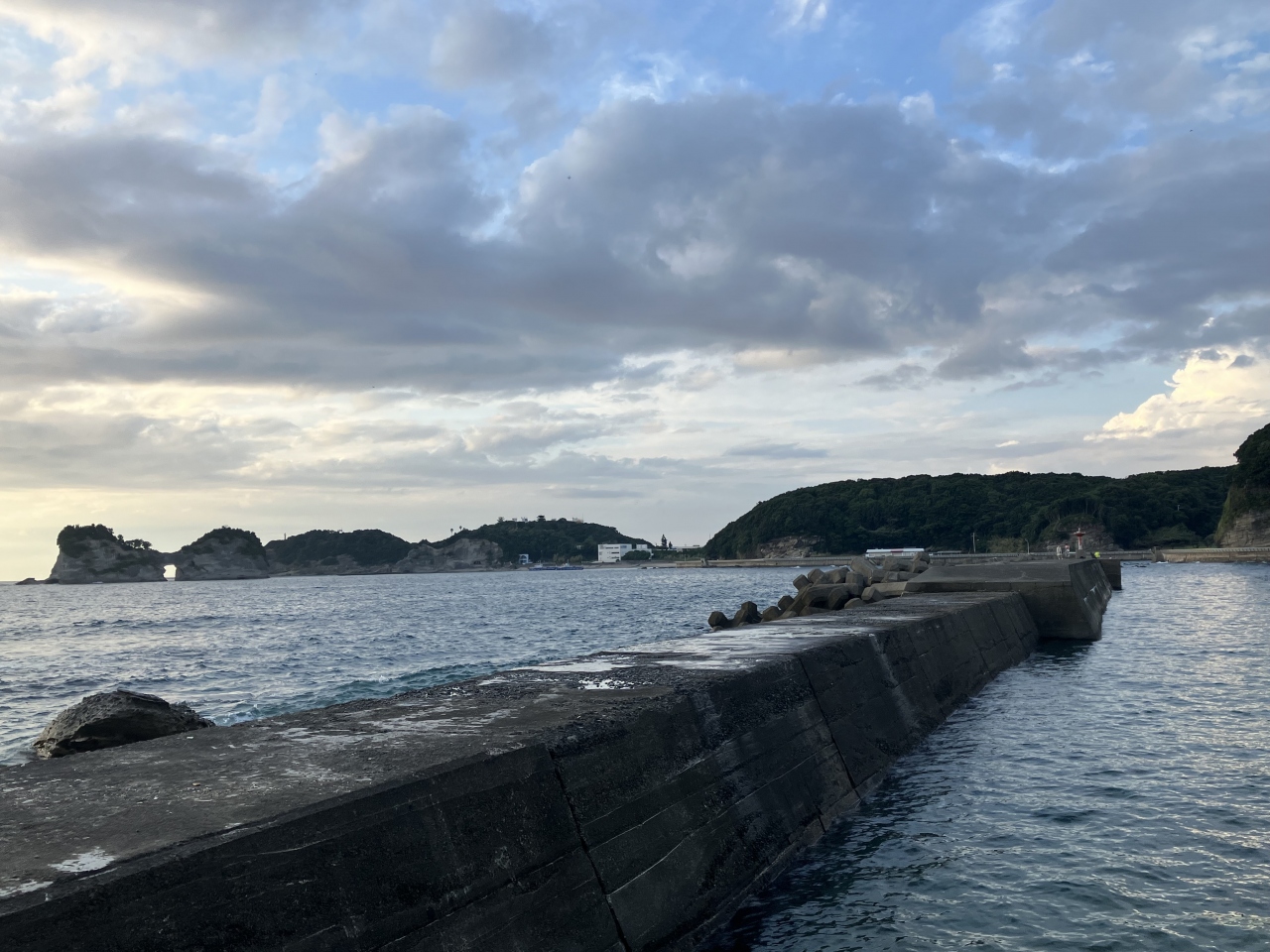 御船足湯から海の方に行き、防波堤を歩いて行くと、イカを釣っているというおじさんに出会いました。