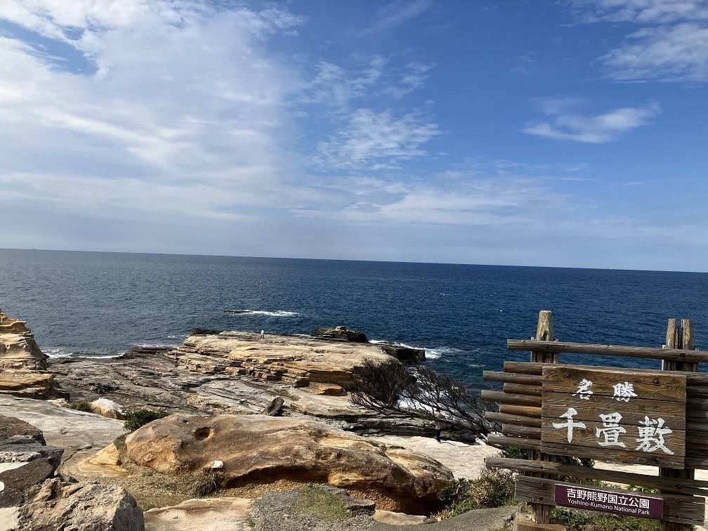 白浜駅からの路線バスで臨海で降り、そこから道沿いに歩いて行けば展望ポイント。