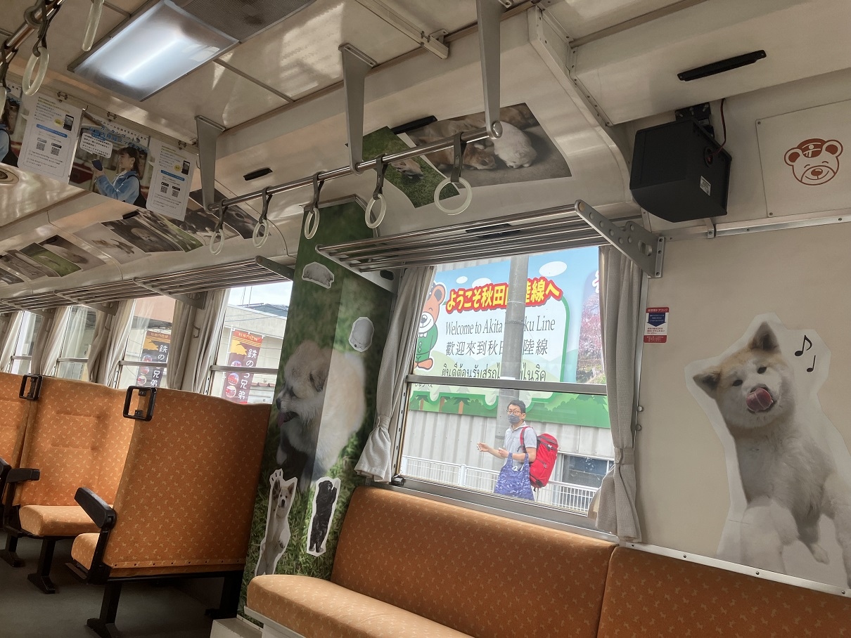 車内は秋田犬三昧、シートの模様も秋田犬で、楽しいです。
