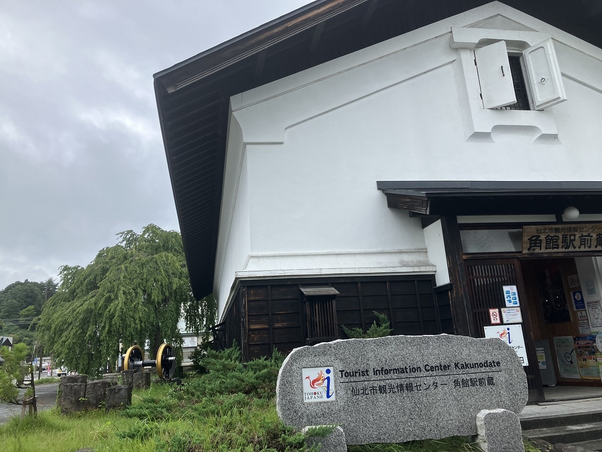 クラシカルな蔵造りの建物に、秋田・角館の観光パンフなどがあります。