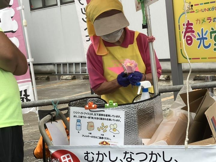 人の流れに沿って行けばすでに露天三昧で、丸子川のあたりにではさらにブースとなっていて、ばばへらアイスも売られています。