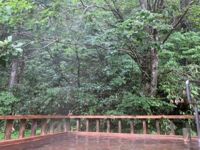 山野の風景の中にの露天風呂で、脱衣所だけは男女別ですが、お風呂は一緒です。
