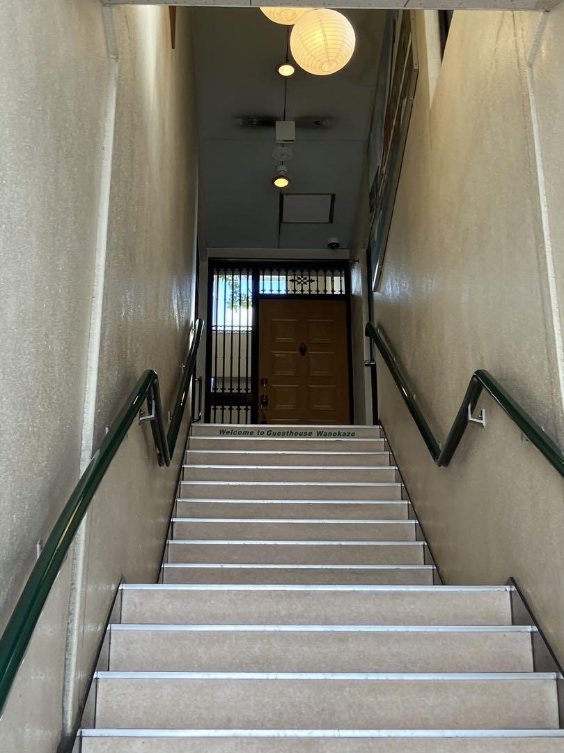 玄関を開けるといきなり階段、2階が宿、3階がオーナー個人住居。