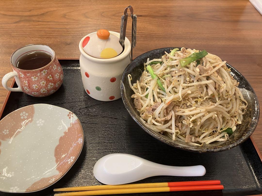 もやしとにら・お肉での炒めが、これでもかと乗っていて、食べられる??と思ったけれど、意外と完食できました。