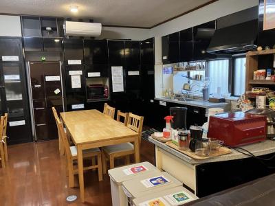セルフでお茶・コーヒーなどを飲め、キッチンもあるので簡単なセルフ料理ができる。