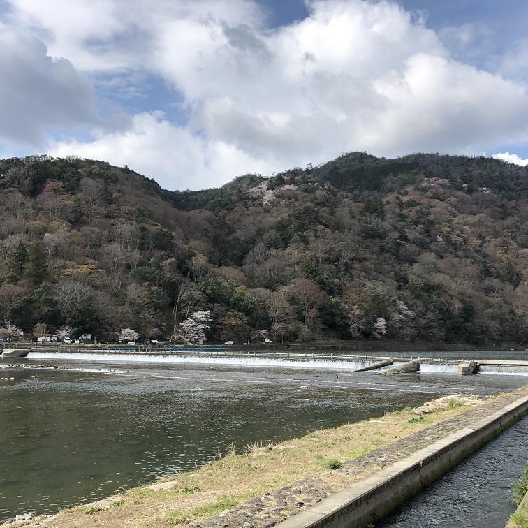 普通の静かな川ですが、嵐山と渡月橋とで、美しい風景となってい