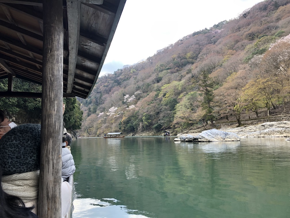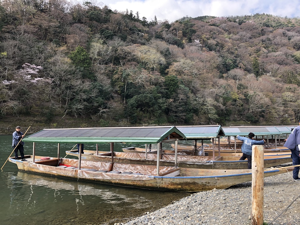 渡月橋に乗り場があり、大勢の外国人客が乗って楽しんでいました。