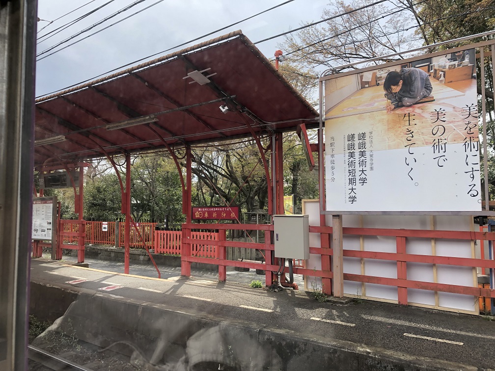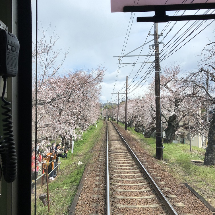 嵐電で桜のトンネルを見たいと思えばここからです。