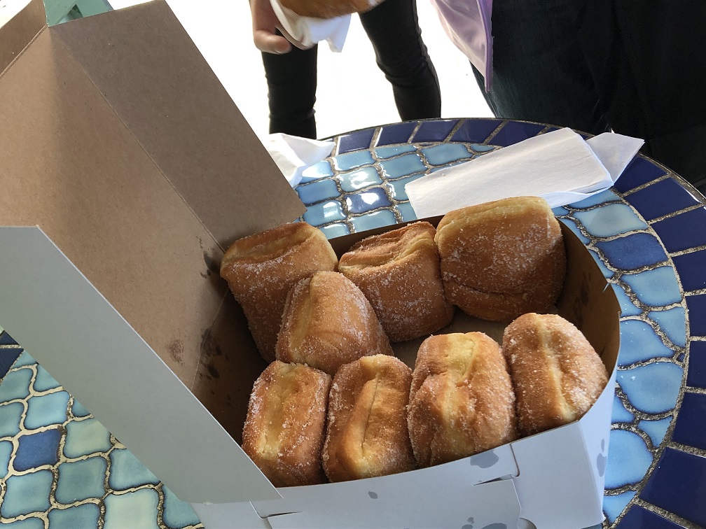 揚げたてに砂糖をまぶしたのと、まぶさないのとがあります。