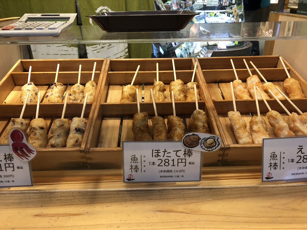 いろいろ試食を勧めてくれますが、さきいかだけは頼むと内緒のように一人分だけ持って来てくれました。- 旅行時期