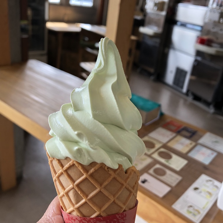 淡いオリーブ色のソフトは、ほのかにオリーブ風味でした。