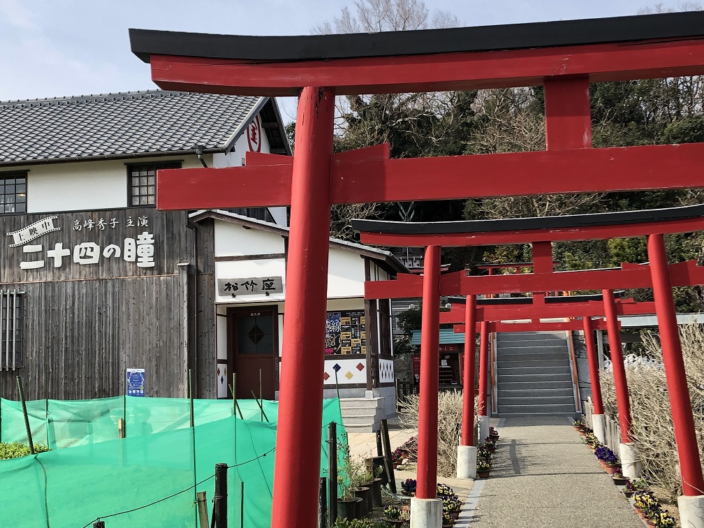 田中裕子主演の「二十四の瞳」映画のためにセットされた場で、大正、昭和初期の雰囲気100%の、小さな村が再現されています。