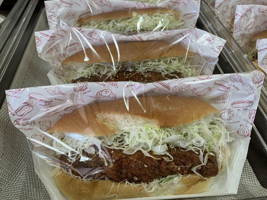串カツとキャベツをパンにはさんだバーガーがあり、ヨーグルトと一緒に昼食にしました。