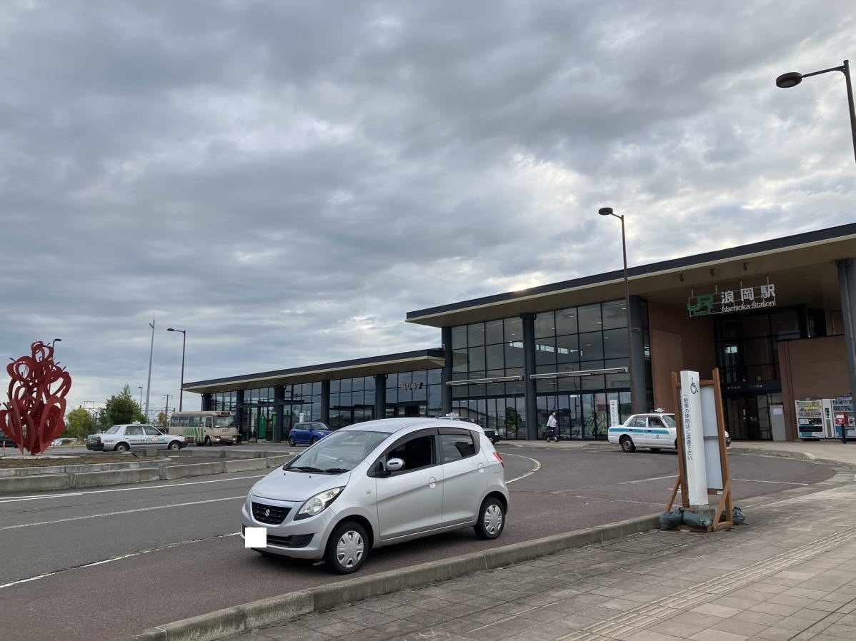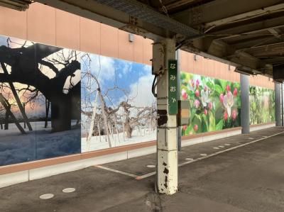 青森空港と弘前を結ぶ連絡バスは浪岡というバス停で止まりますが、そこから右に曲がり、まっすぐ行くと浪岡駅です。
