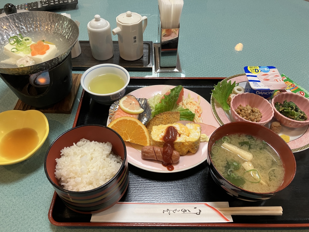 朝食はバイキングではないけれど、栄養バランスの良い食事で、バイキングだとつい食べ過ぎてしまうので、こういうのも良いです。