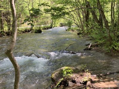 新緑の季節でしたが、緑の濃淡と川の流れ、青空と雲、鳥のさえずり。