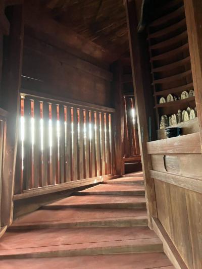 会津の栄螺堂は登りも下りもらせん状でしたが、こちらは登りはらせん状ですが、下りは中心をまっすぐ階段で降りるという、 の の字を裏返したような設計です。- 旅行時期