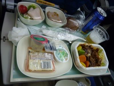 前回の6年前は関空からの直行便を選択したが、この円安や、燃料サーチャージの高騰で、他の航空会社を捜してみた。どうしても直行便でのフライトは高く乗継便で行く方法を選んだら、ハワイホテルのセット料金の割引サービスを見つけたのがKALでした。当機はJALとも提携しておりマイレージも付いた。機内食もエコノミー食が計3回だされ、よかった。