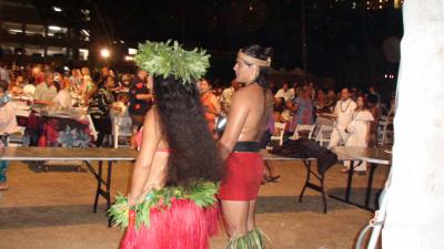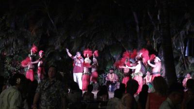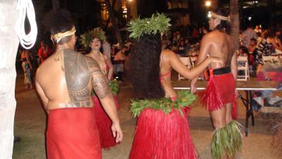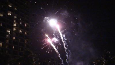 ヒルトンヴィレッジホテルに3泊滞在し、運よく土曜日のショーを見ることが出来た。このショーはデイナー付きシヨーで食事はできないが外部からは無料でで花火とフラダンス、炎ショーを見ることが出来た。多くの見物客の中で迫力あるショーが終われば約10分後にワイキキの浜辺での打ち上げ花火ショーが約10分打ち上げられた。