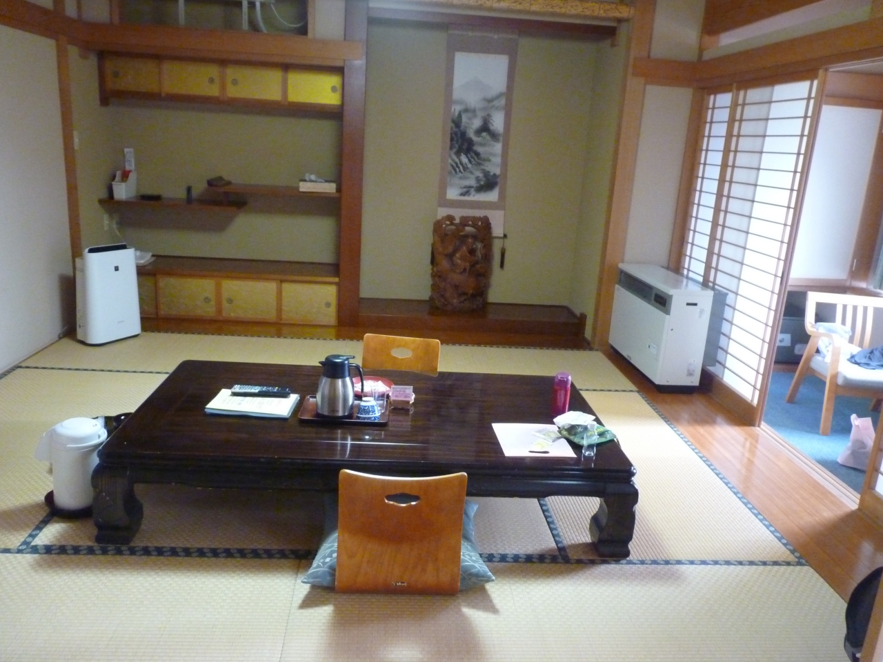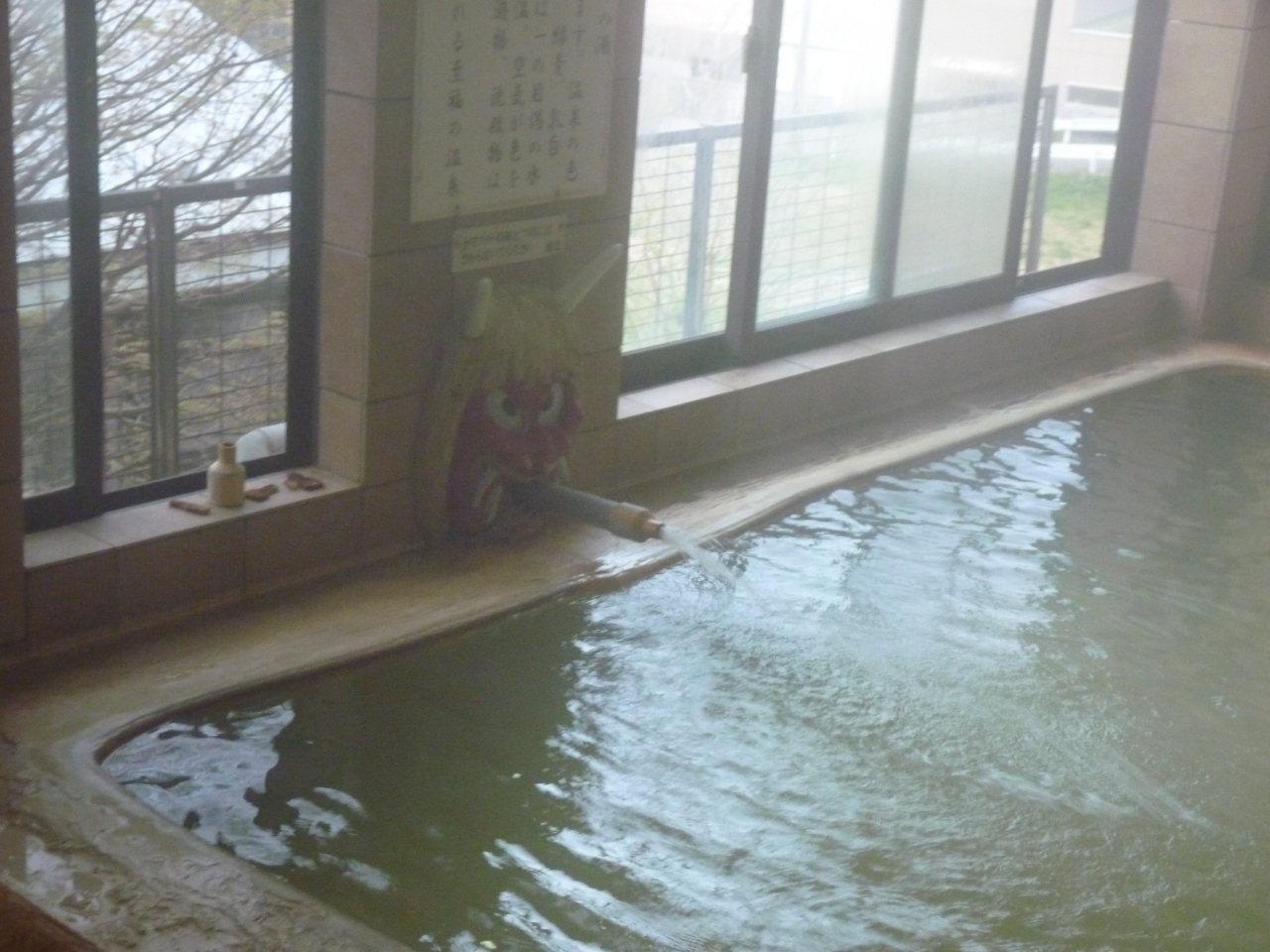 友人の勧めで当ホテルを予約する。2階の間で部屋から日本海が遠望できる。早速当館自慢の源泉かけ流しの湯にゆったり浸かり旅の疲れをとる。ここの湯はパイプで元湯から引き込み間欠泉の様に勢いよく源泉が噴出し面白い。夕食も男鹿半島の郷土料理の安ぺら餅や石焼料理の実演があり大変興味深かった。