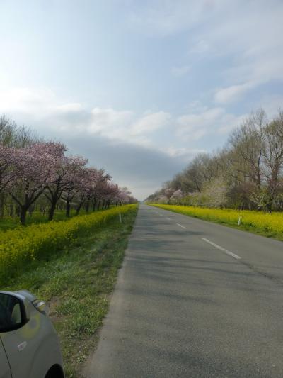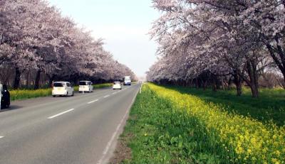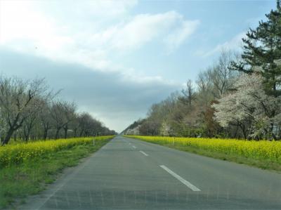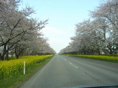 今回の目的であった大潟村の桜と菜の花のロード巡りに向かった。空港より直行して目的地に向かう。夕暮れ前であったが、全長11kmに及ぶ通りのビューは最高でした。幸いに桜も満開で、例年4~5日早いようであったが何とか間に合ってほっとしました。菜の花は今を盛りに咲き誇りそのコントラストはいつまでも印象に残りました。