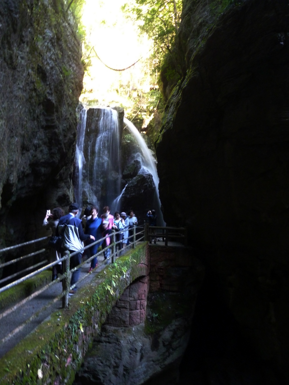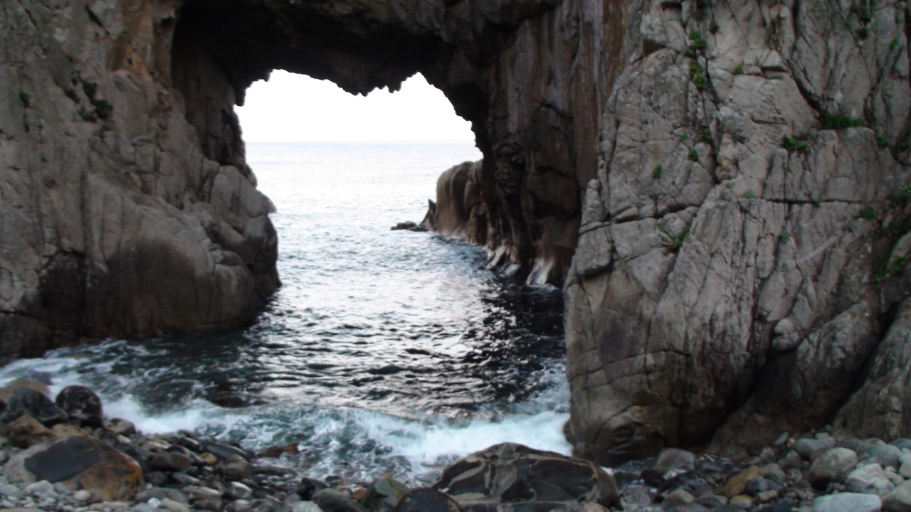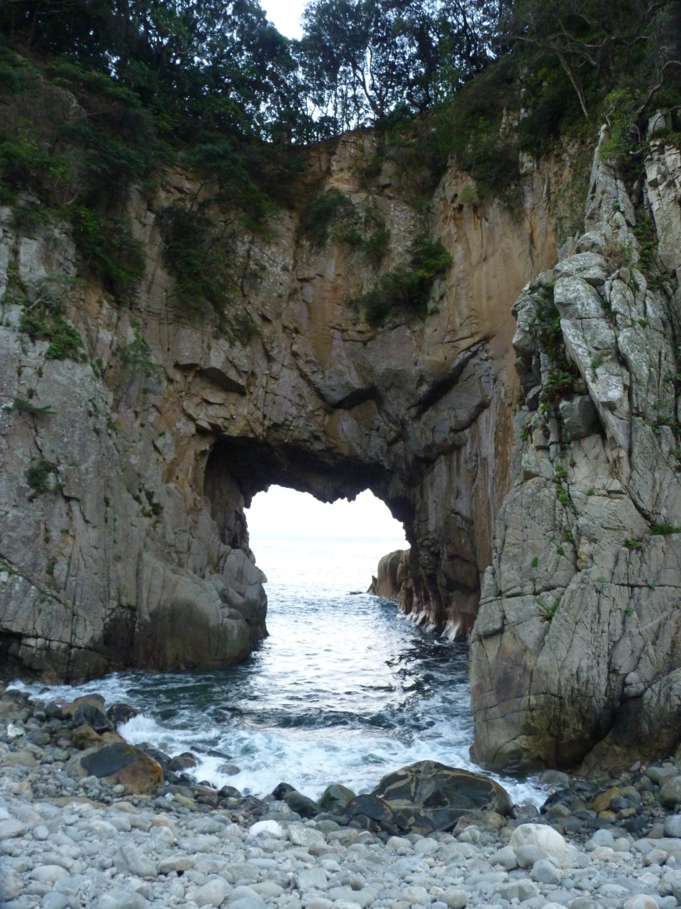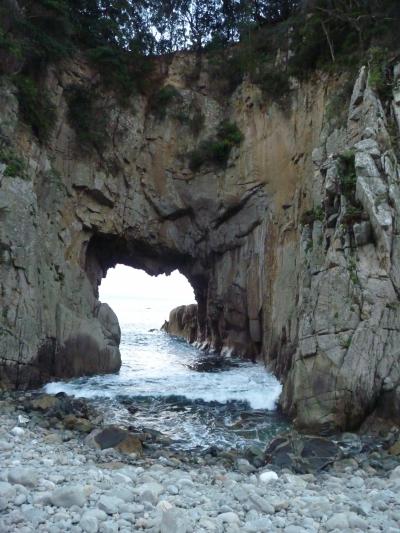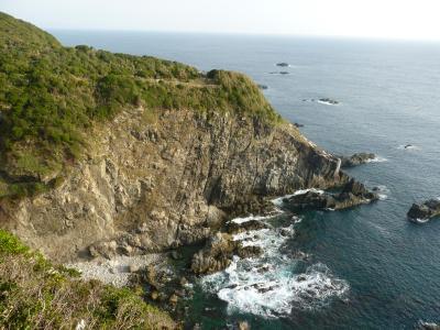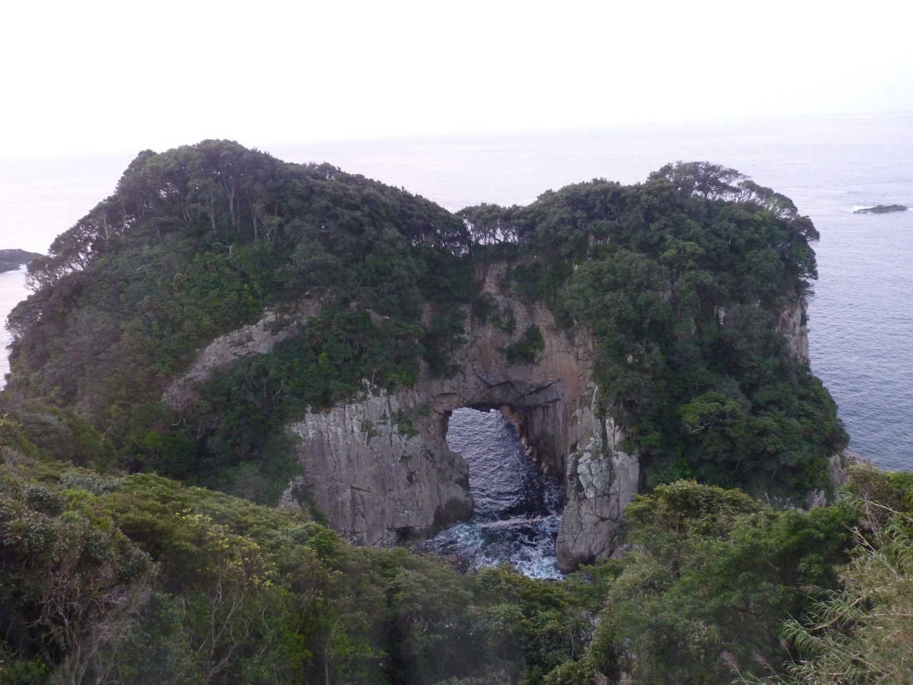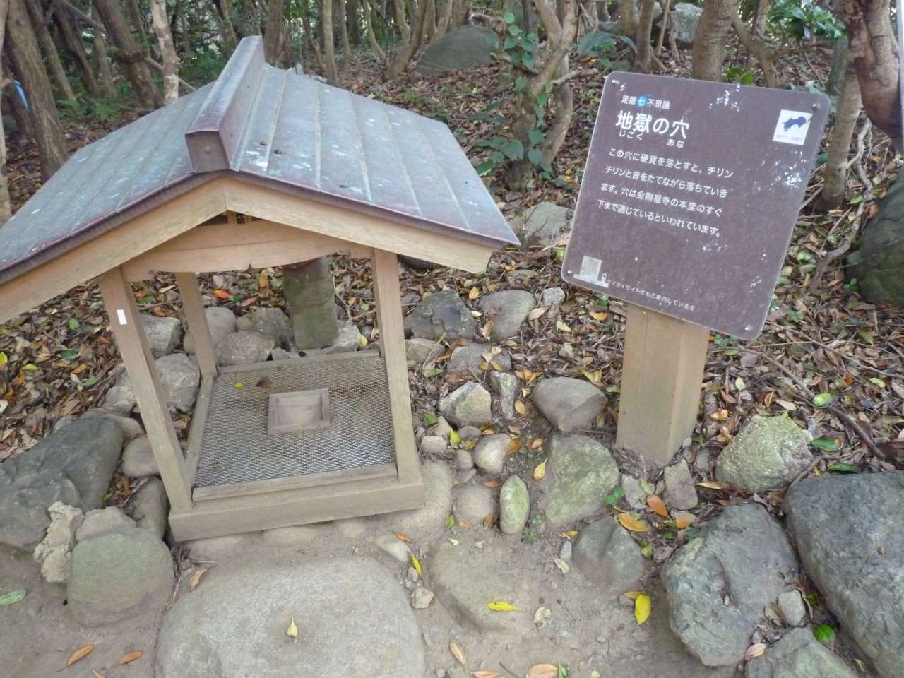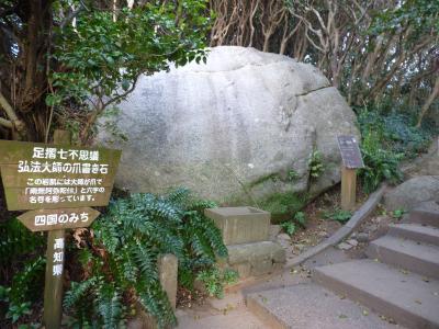 足摺岬の観光に行く途中に歩道のトンネルを抜けて灯台に行く途中の自然遊歩道に2か所、道わきにお大師様に関わる七不思議伝説が見られる。大師の爪書き石と地獄の穴がある。ここは四国八十八か所巡りの一つで人気のスポットとしてよく出ています。さすが巡礼巡りの逸話として伝わっているのが四国らしい…