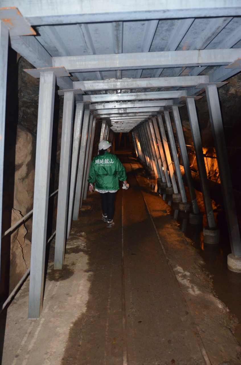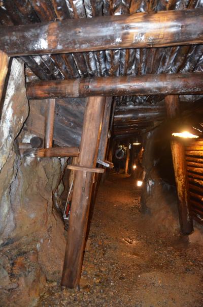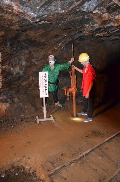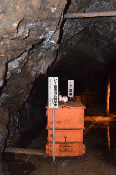 朝来インターを降り神子畑選鉱場跡の前を通り429号を走ること1時間半近くの山道をかき分けての旅のなる。ここは錫の産出が日本一で今でも坑内には多く埋蔵しているが採算が採れず昭和62年に閉山したそうだ。今はその坑道を鉱山探検坑道として見学することができる。約1時間の案内で見どころを紹介してくれる。ここから1円電車で神子畑迄功績を運んだとのことです。