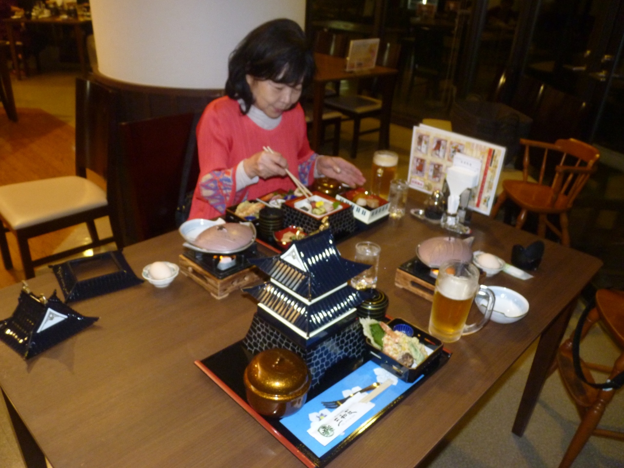 福知山市から少し離れている(市内まで20分くらい)小高い丘の上にあり、ここからの眺めの良い里山荘で宿泊もリーゾナブルナ値段でであった。従業員も新設で対応もよく、夕食も予約で桔梗城御膳を注文しておいしくいただいた。少し残念なのは天然温泉でないのが惜しまれる。