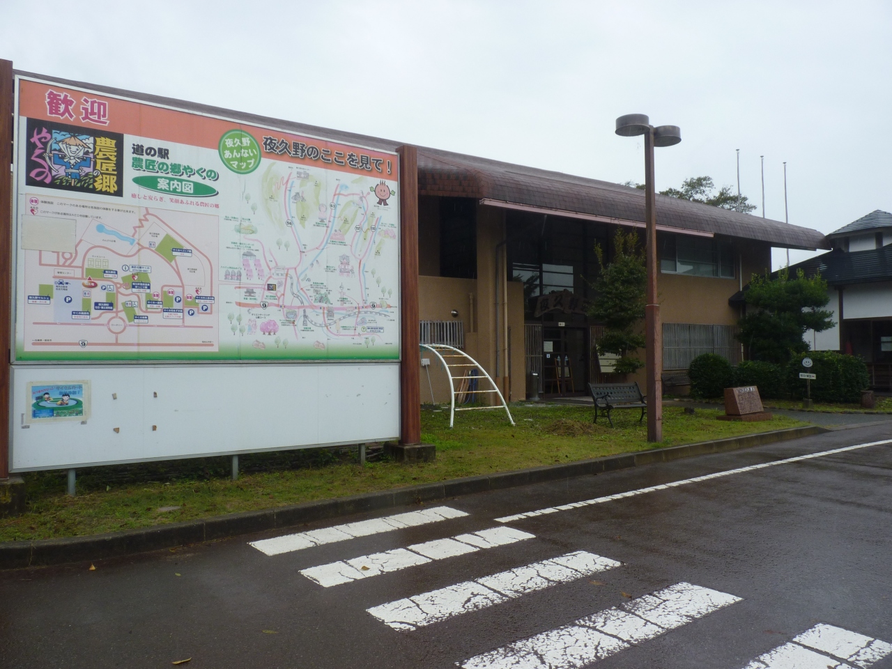 国道9号線沿いにあり、ドライブインやくのの角を曲がり少しくぼんだ所のある。普通の道の駅と違いいろんな施設が立ち並び駐車場も広く楽しい。目当ての新鮮な高原野菜が格安で手に入る。、隣ではソバも食べられたり、夜久野高原温泉ほっこり感もあり湯につかって旅の疲れを落とすのによい。