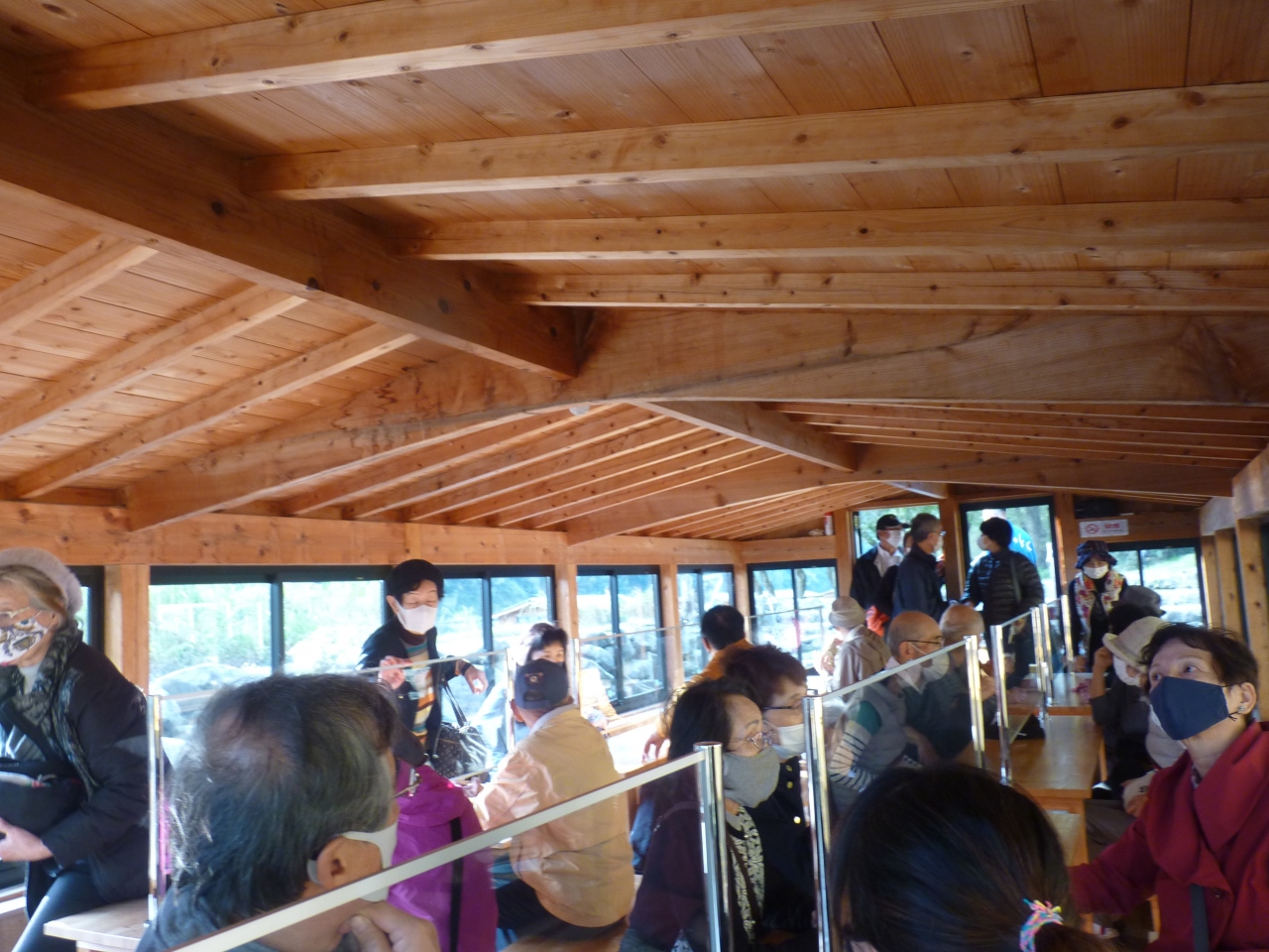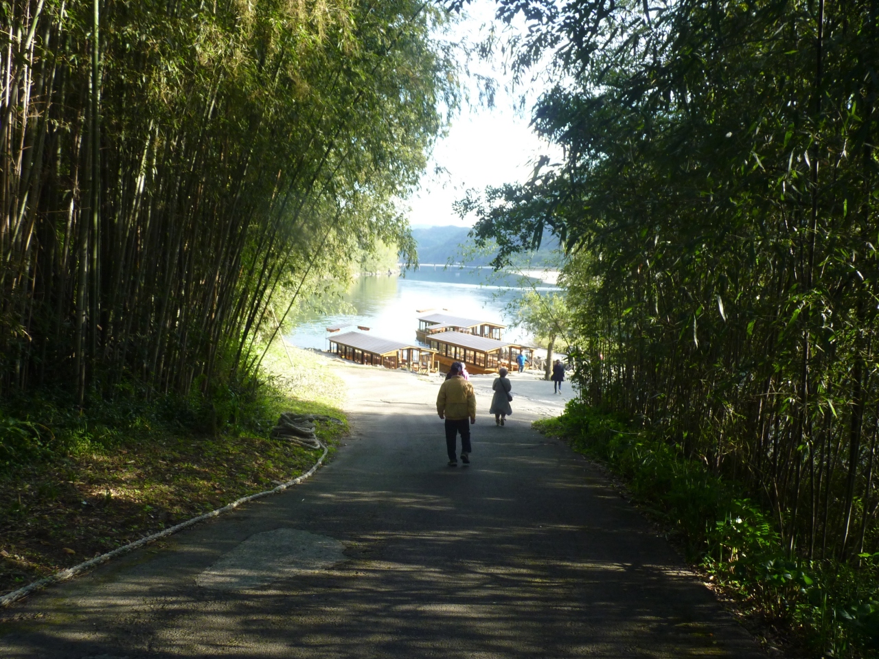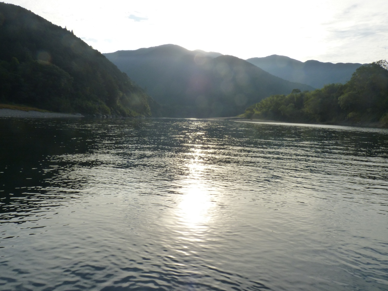 中村駅より国道441号線で車で約20分四万十川を登ると四万十川屋形船の遊覧船が出ている。約30分ほどの観光で案内してくれる。青く澄んだきれいな川は他に無い自然の美を売り物にしている。ここの見どころの一つは潜水橋(高瀬沈下橋〉がかかっておりその下を潜り抜けUターンして上流に向かうコースであった。水は清く静かな流れの中アユが飛び跳ねている姿も見られた。