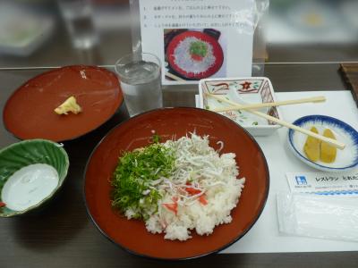 国道56号線沿いの須崎西に在り、ちょうど昼になり食事をとる。ここの名物「ちりめん丼」を食す。ちりめん、生姜、ネギ、をご飯にかけポン酢を少々かけると美味であった。ちくわ入りラーメンセットでお腹も十分ふくれた。海に近くやはり魚類は新鮮であった。