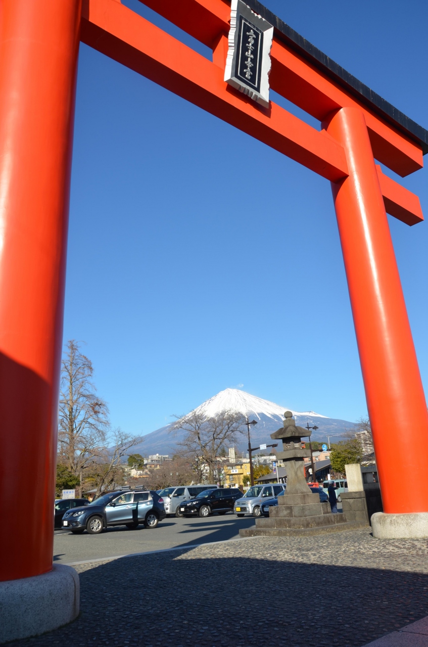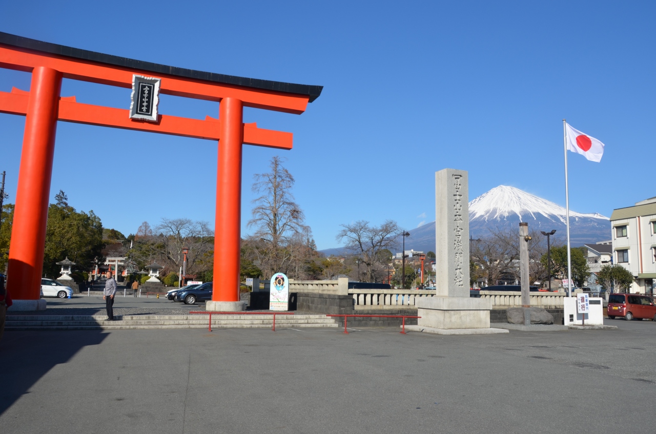 駐車場に車を止めて参道に入ると、朱に染まった大鳥居が威圧するように出迎えてくれる。ちょうど天気が良かったので鳥居の間から顔を見せる富士はまた格別のスポットでした。さすが総本山だけあり参道から本殿までの道も立派で厳かな気持ちでお参りした。本殿も立派で絶えず雅楽を流し雅楽雰囲気を盛り上げていた。