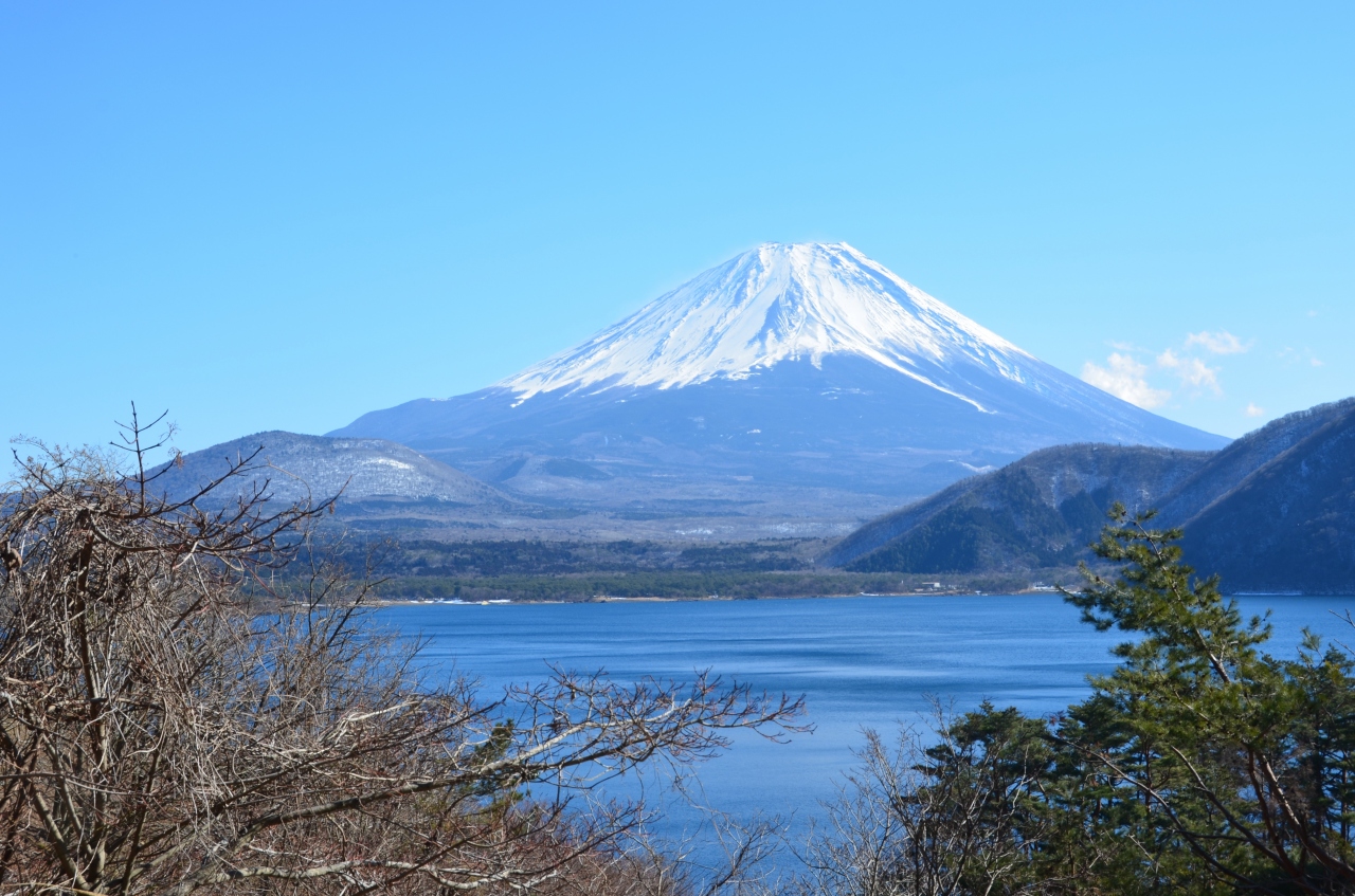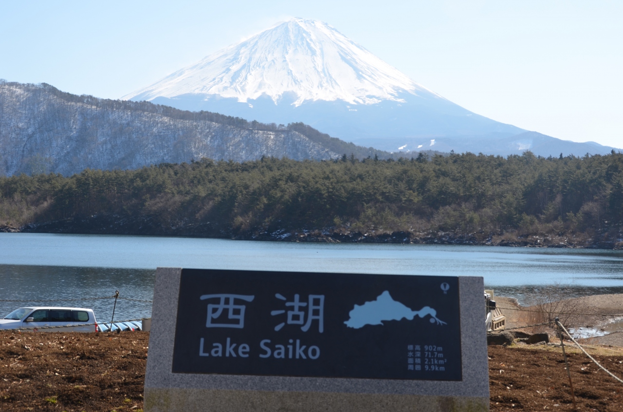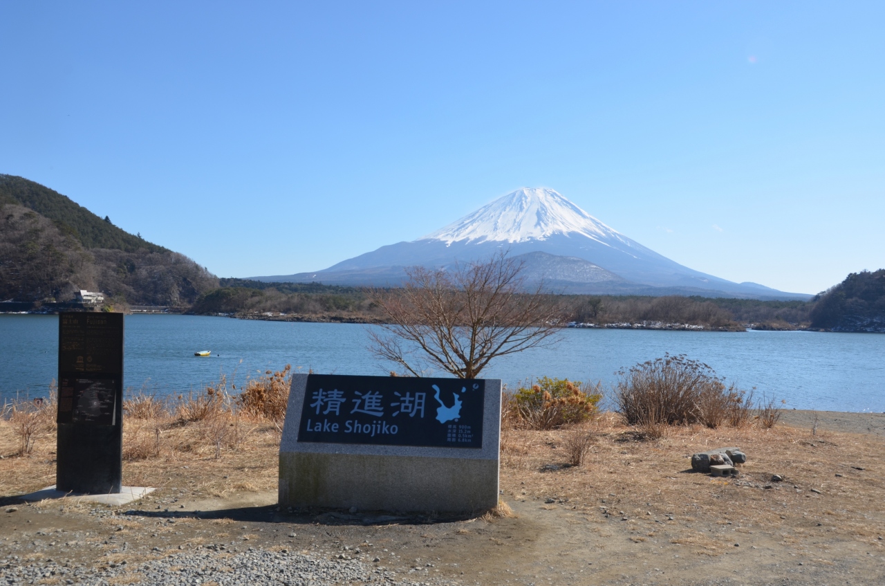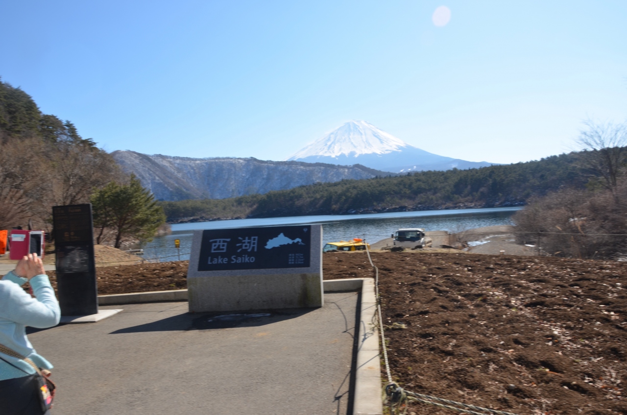 最後の訪問地の本栖湖は千円札のモデルになった撮影場所があると聞きたのしみにしていたが、やはりお札に載っているような「逆さ富士」は今回の旅ではだめでした。やはり冬場の風の吹く時期は難しいかもしれません。案内板に撮影された写真がありましたので、イメージして今回は収めました。