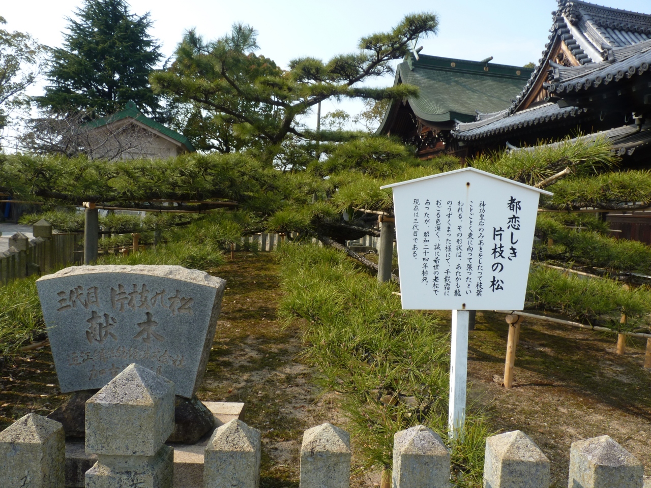 昔から浜街道筋の松の名所の一つに数えられ、多くの参拝客でにぎわっていた神社の一つで歴史的にも古いスポットです。重要文化財になっている鐘楼があったり相生の松も植わっている。見どころは神社横に植わっている「片枝の松」で一本に伸びた松の姿が見ごたえがあります。