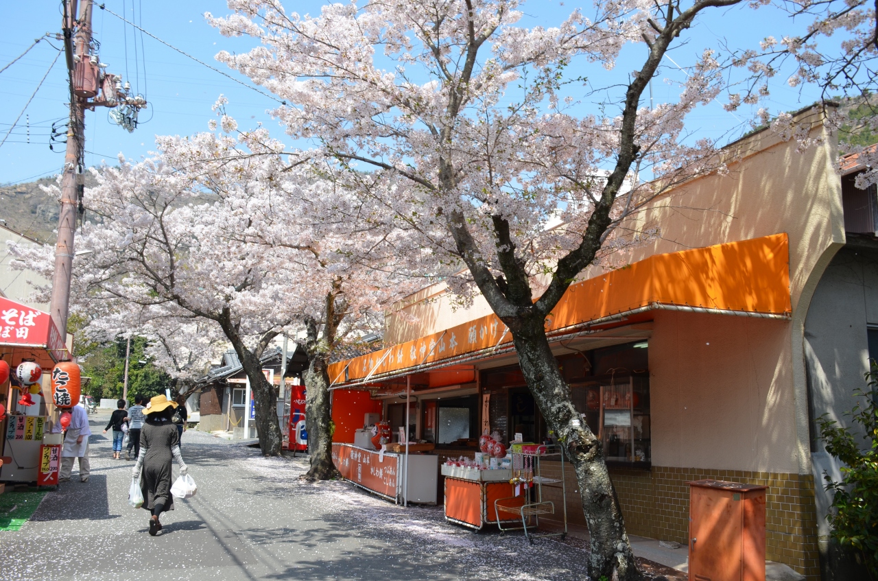 一願成就の神社としても有名であるが、春は参道一帯に桜並木が出て多くの参拝客でにぎわう。神社一帯が桜が多く植えられて季節になれば、入学祈願やお礼参りでにぎわい、有名です。このあたり一帯は柏餅の葉が取れて名物として参道には柏餅を売る店が年中を通じて売られている。