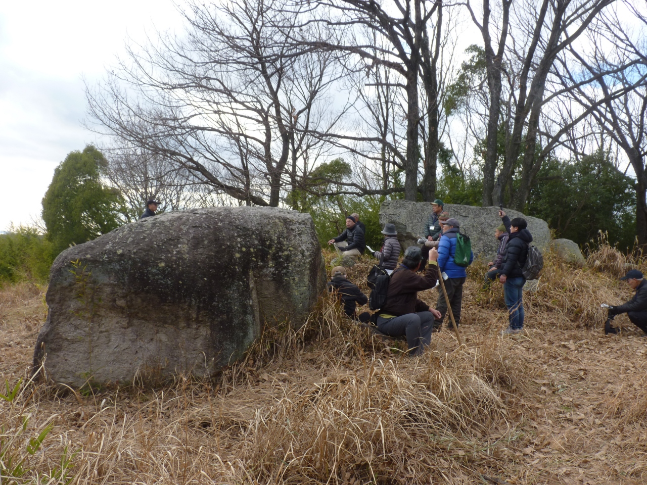 曽根公民館より川を渡ると住吉神社が見える。貝塚古墳を横に見ながら緩い坂道を道なりに進むと日笠山の頂上に出る。ここは多くの古墳遺跡が発掘され隠れた古代フアンのメッカです。山頂からはハイキングコースもあり途中には古代岩などもあり歴史のロマンを味わえる山です。