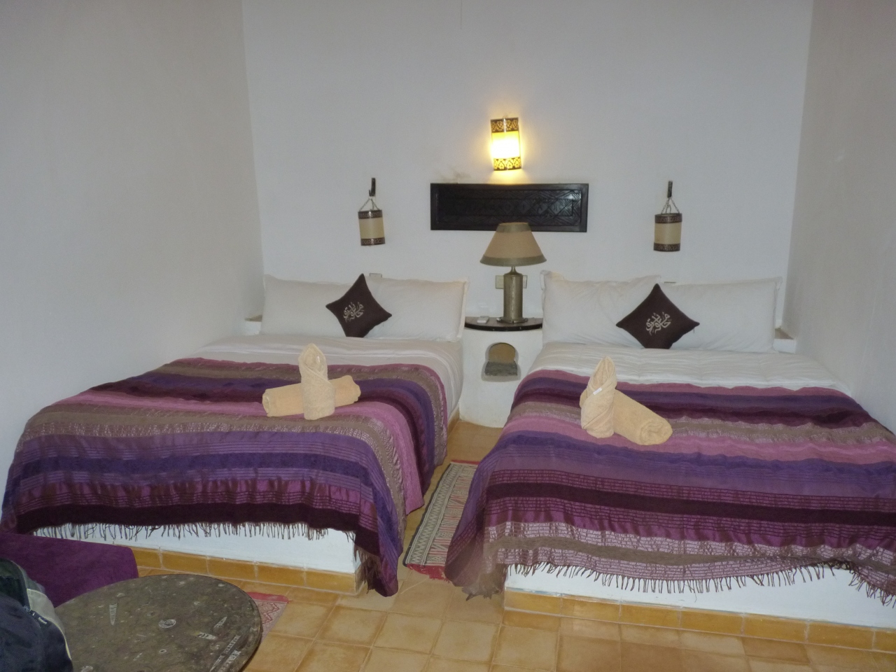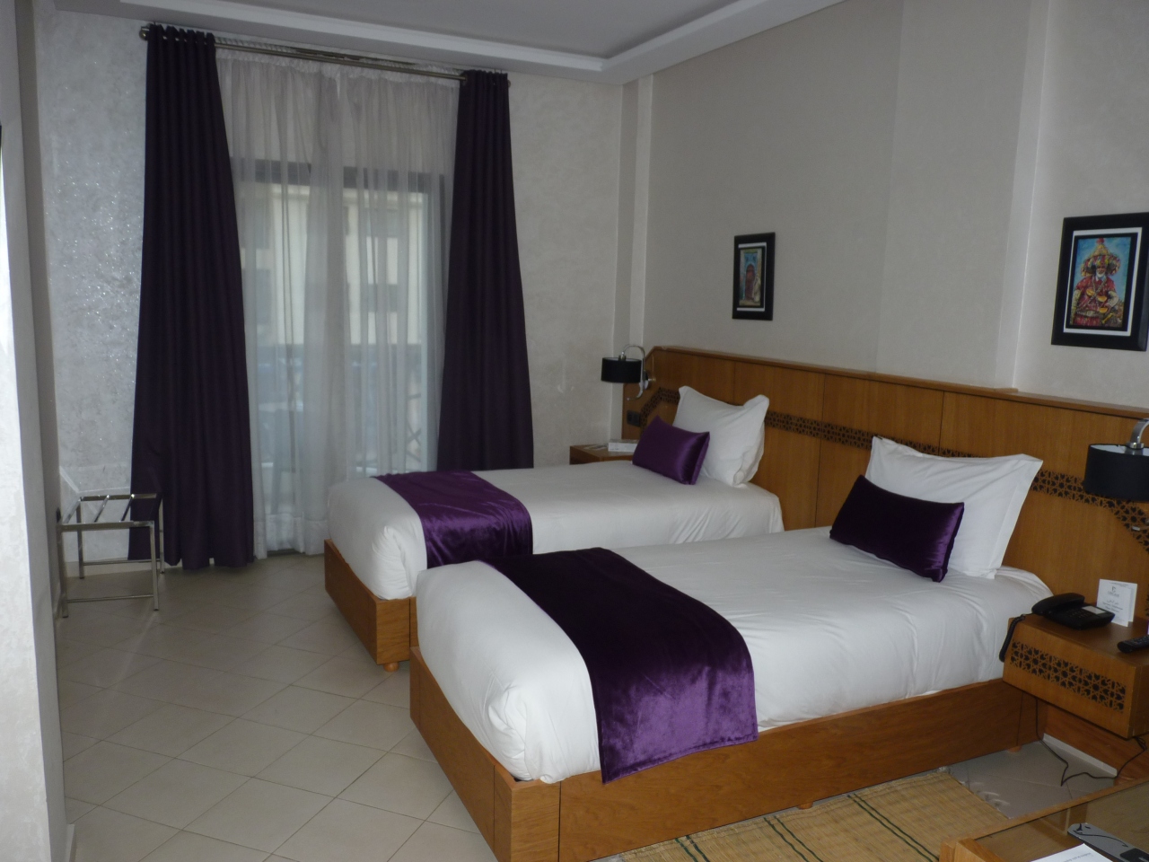 モロッコでの初日ホテルであり多少の不安もあったが、部屋は清潔でシートも良かったが、道路に面していたので車の音や人声が少々うるさかった。4つ星ゆえバスルームを期待したがシャワーのみであった。ここは夕食、朝食ともバイキングスタイルですが、野菜は豊富に出されていた。