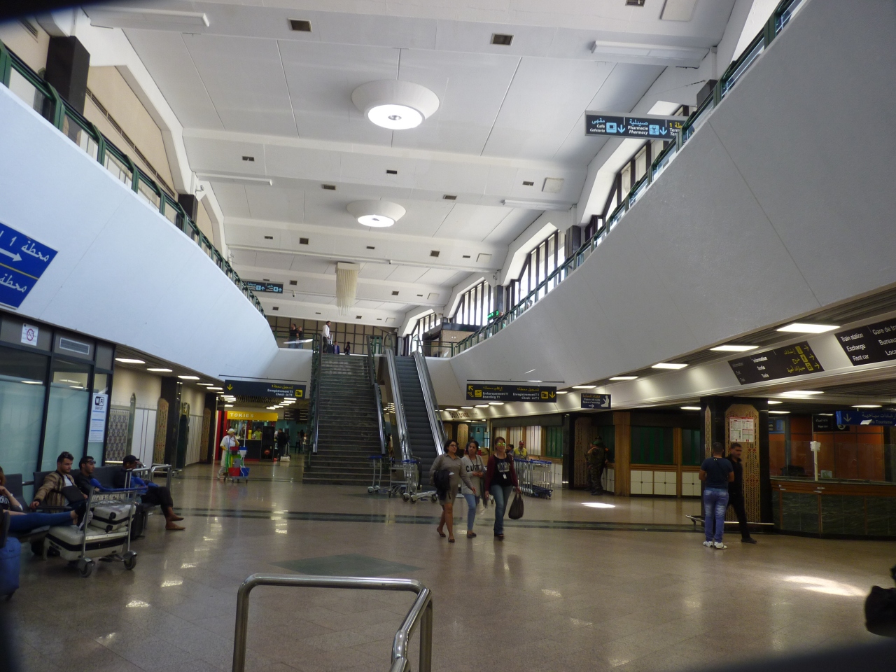 モロッコへは直行便はありません。エミレーツ航空でドバイから約7.5時間の旅です。関空からだと同じくらいの旅をしドバイで2.5時間くらい待ち約18時間の長旅でかさブランカの空港に到着します。空港そのものは清潔で、人ごみも多くなく日本のローカル空港のような感じです。