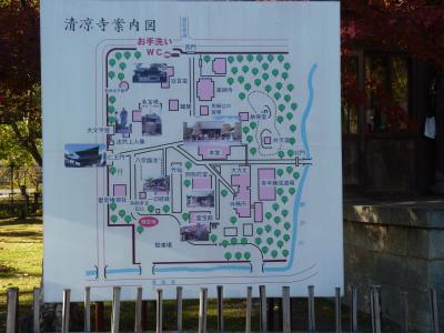 山門から本堂までは広く、石段が続いている。山門も本堂も大きく堂々と建っている。紅葉樹が本堂横から見られ丁度見ごろで、人が少なくゆっくりと観賞できた。本堂横には豊臣秀頼の首塚がある。嵐山からは少し離れているだけに紅葉の穴場かもしれない。