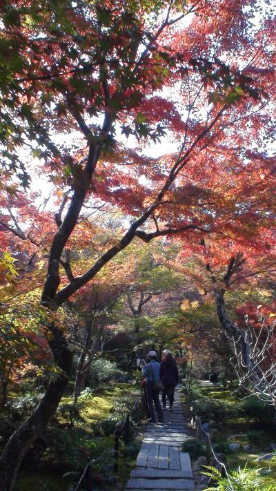 市営バスを利用して紅葉した天竜寺を訪問。拝観も本堂と庭園に分れきっっちり取られる。参道のもみじも盛りで美しく被写体になる。特に大方丈からから見る曹源池の紅葉は嵐山をバックに見事である。参拝コースに沿って紅葉した紅葉道は時間のたつのを忘れさせてくれる。