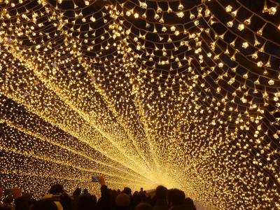 全国イルミネーションランキング1位と評判の高い名所であるのでその人通りも多いと聞き、年末のすきを狙っていったがやはり当日の見学客は13000人と発表があり、相変わらずの人気ぶりであった。明るいうちに入場し点灯の瞬間を待つため30分ほど前から並び、ゆっくりと雰囲気を他に死んだ