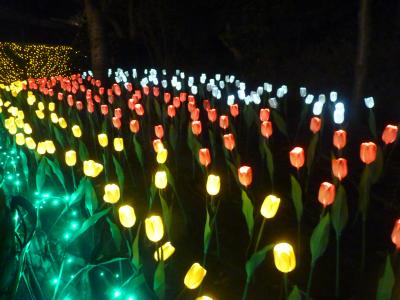 この里はイルミネーションだけでなく四季を通じて楽しめる観光地で、この時期は少し遅めの紅葉した紅葉と年中楽しめるベコニアガーデンがある。又冬にも関わらずチューリップも咲いているのには驚いた。庭内は広く時期を通じる花類も楽しませてくれる。昼間はガーデンを楽しみ夜はイルミネーションを楽しませる里である。